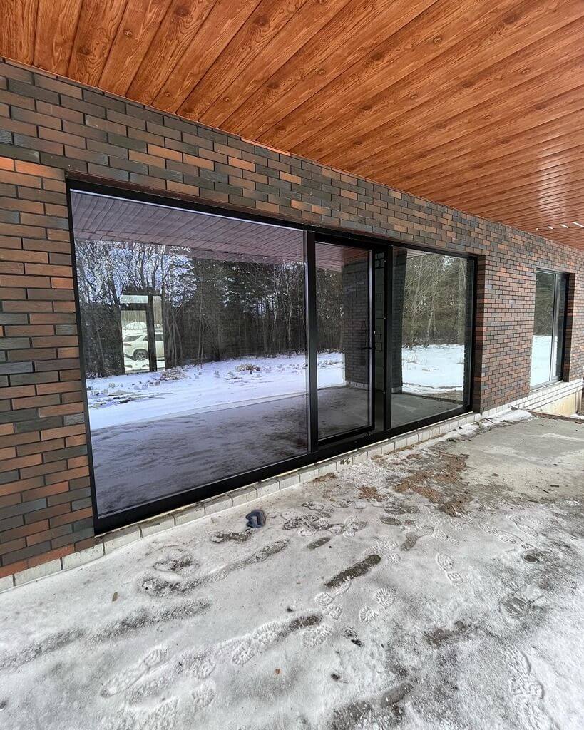 Для коттеджа с террасой часто выбирают панорамные двери большого формата. Если терраса используется круглый год, стоит обратить внимание на теплые подъемно-раздвижные системы. Для сезонной эксплуатации требования мягче.
